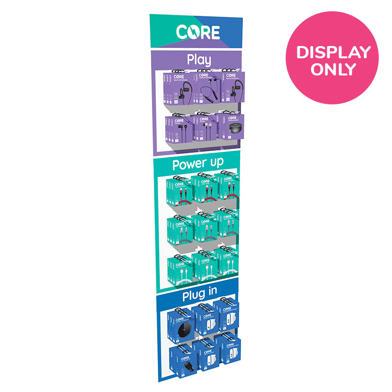 The branded panels fit over your slatwall as a great backdrop for your Core Bolt products