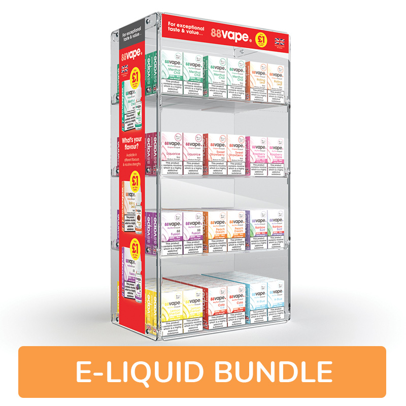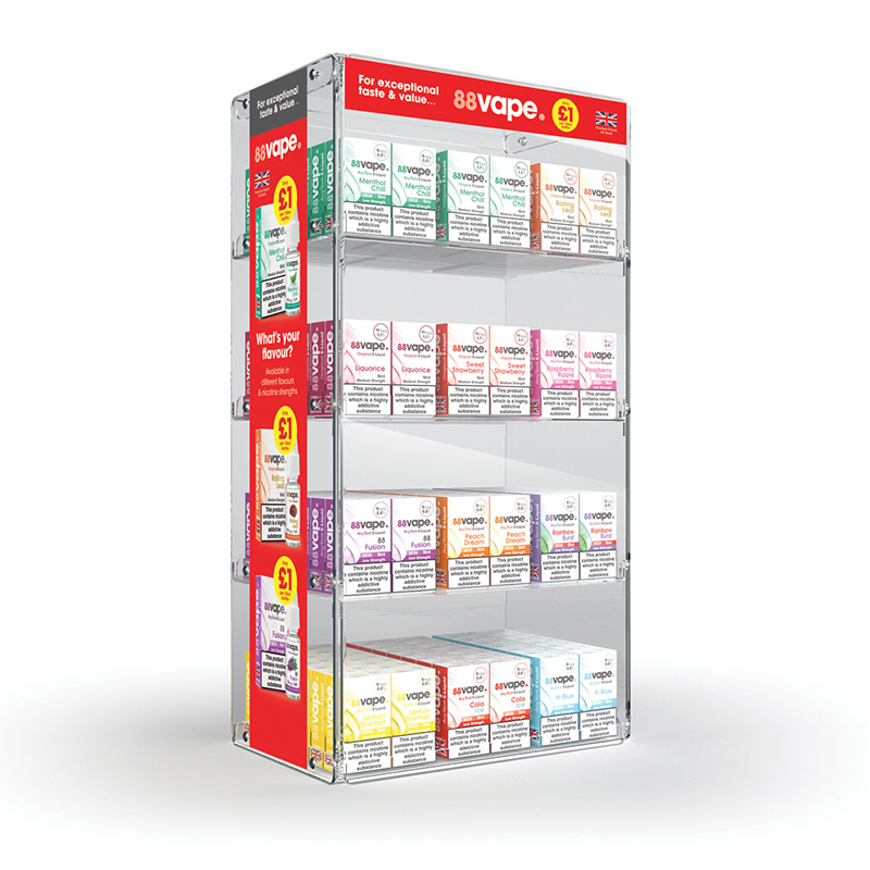 *Please note that the 88Vape branded counter display unit (CDU) remains the property of Core Communication Retail Limited and can be reclaimed if minimum sales rates are not met. Only 1 offer per retail address. The 88Vape CDU can be purchased for £45.00 (ex VAT) and you may be charged if the CDU is lost or damaged. It is at the discretion of Core Communication Retail Limited that this fee may be waivered.