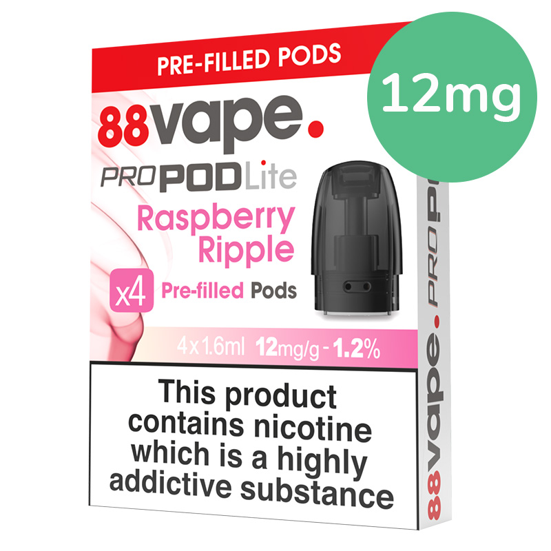 Disposable 12mg/2ml Prefilled Raspberry Ripple Pod x 4