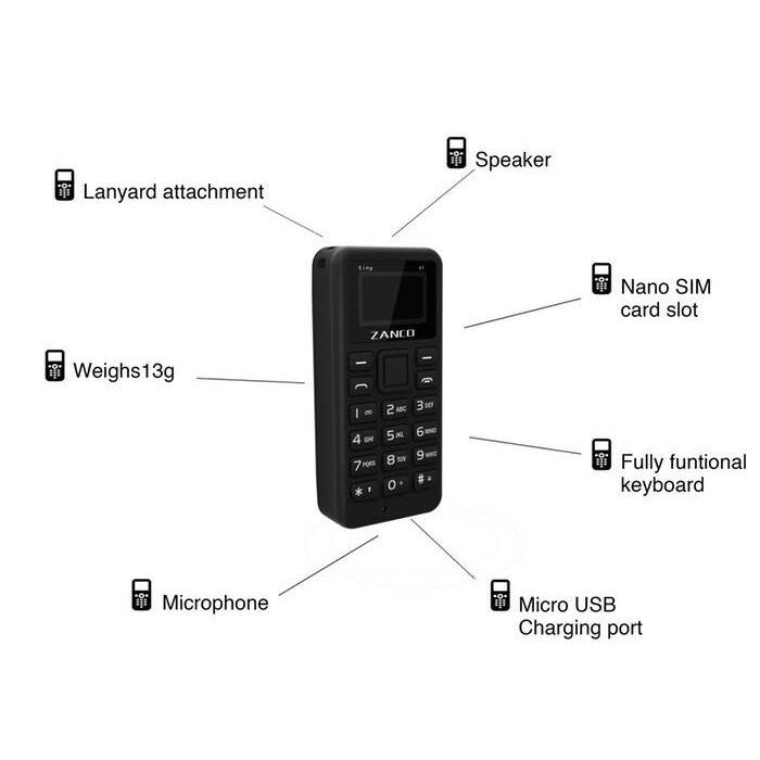 The Zanco tiny t1 has connectivity options like 2G, Bluetooth, and Micro-USB.