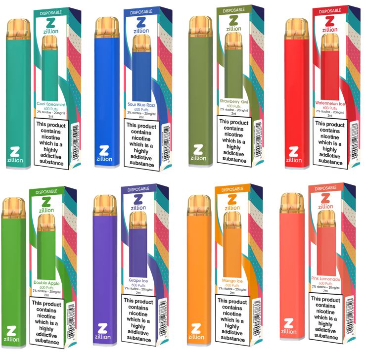 Introducing Zillion, the new disposable vaping product from the manufactures of 88vape. The range is completely Trading standards and TRPR compliant. Each 20mg strength pen contains 2ml of e-liquid which is enough for up to 600 puffs.