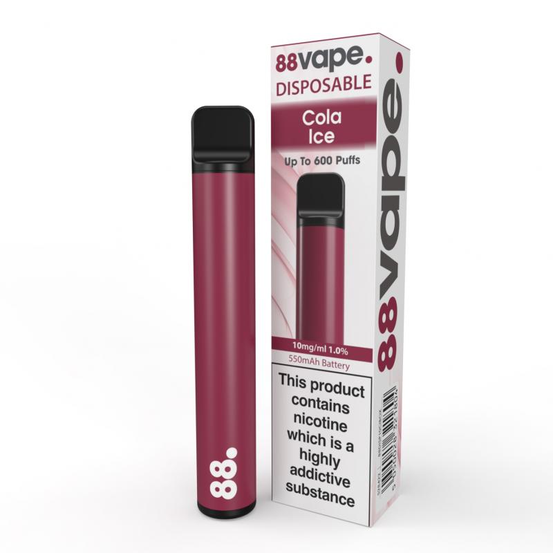 88Vape disposable vape pens are filled with 2ml of 50/50 nic salt in 20mg nicotine strength (2%). The draw activated 550mah battery has enough power to ensure you empty the internal 2ml pod. Fully TRPR and Trading Standards compliant.