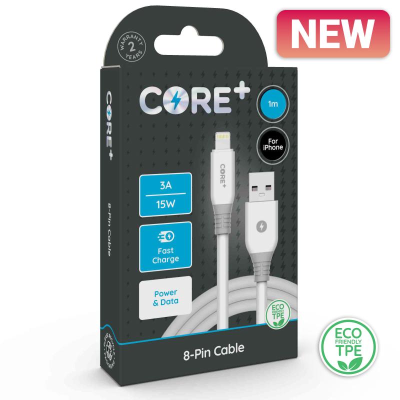 CORE+ 8-Pin Cable 1m TPE White 3A/15W Fast Charge