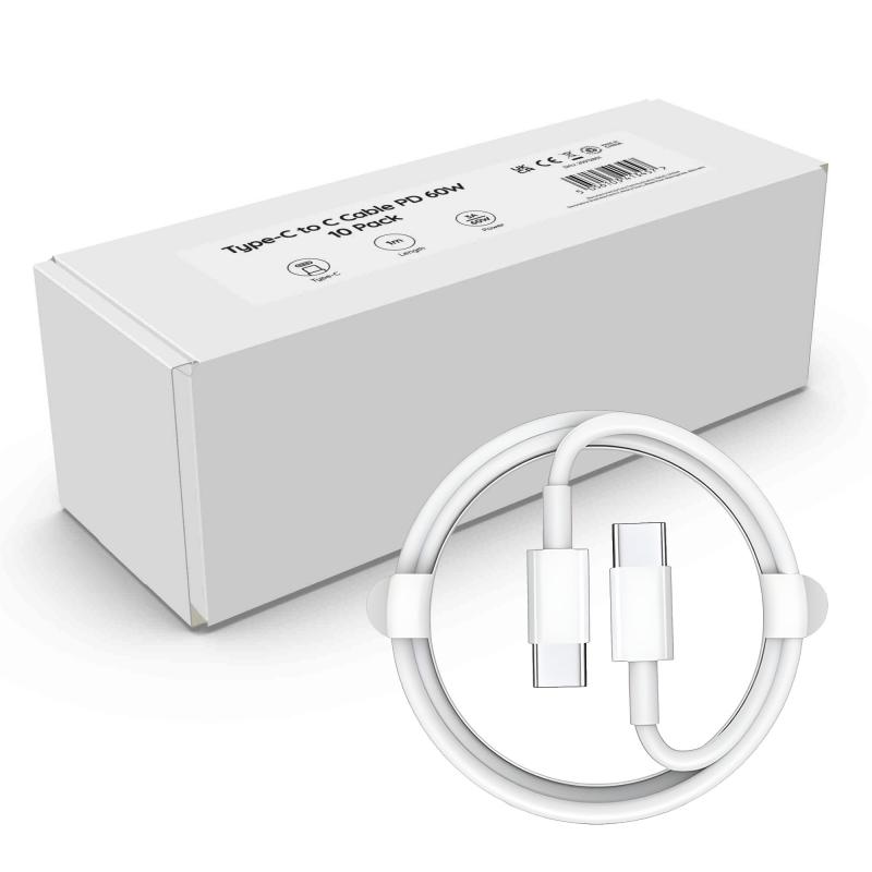 10 Pack Type-C to C Cables 1m White 3A/60W PD