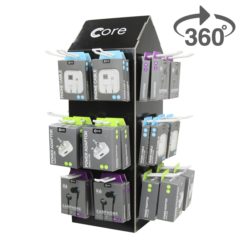 - Free 24 hook rotating counter display stand (rotates 360 degrees)